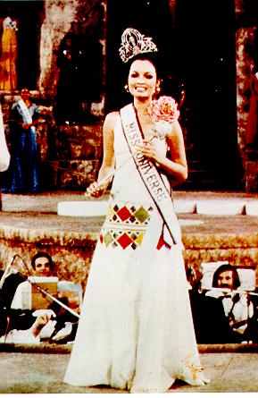 After her spectacular debut in 1972, she kept her suitcases packed and traveled where ever the itinerant pageant took her. In 1973, she introduced us to the culture of Athens, in what was the most spectacular setting ever for the Miss Universe pageant. From high above the ancient stage of Herrod Atticus, Helen informed us of the history of this great city and even managed to tip us off to the pleasures of Ouzo.