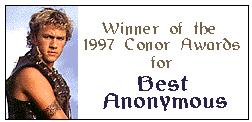 Welcome to the 1997 Conor Awards Pre-page. Here are the rules, nomination information, and anything else you might want to know. If there's something NOT listed here that you'd like to know, feel free to e-mail me at roarfic@usa.net.