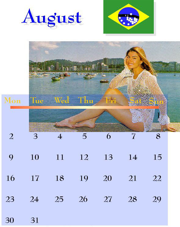 | 1999 GLOBAL BEAUTIES CALENDAR Leila Schuster, Miss Brazil 1993, was recently selected as the 7th most beautiful Miss Brazil of the century. Does anyone wonder why? |