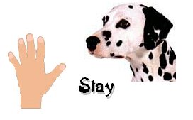 This command is easiest to teach when the dog is sitting, facing you. The trick of this task is to have your dog focus on you, but not get up and follow you. Start out standing directly in front of the dog, and make a "stop sign" with your hand. Put your hand in front of it's nose and say your command, "Stay". Slowly take 1 step back (keeping your hand up), wait 5 seconds (don't put your hand down!), and return to reward your dog. When you step back, stare your dog in the eye, and he will stare you in the eye. It's all about your dog focusing on you. Once your dog has the hang of staying with you 1 step away, gradually increase the number of steps backward you take. Eventually, you should be able to completely leave the room, and return with the dog still sitting there waiting for you to come back.