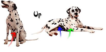 This command is to be used to make your dog stand from a sitting or laying down position. If the dog is down, place one hand under the arm pit, and one under the stomach and lift. If the dog is sitting, place both hands around the hips and pull up. Say your command, "Up" and reward your dog.
