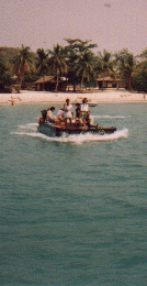 into the knee deep warm water and wade ashore. A couple of smartly uniformed