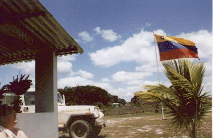 The Venezuelan flag flies over a government frontier post near the gold mines on the river.[jpg-24138k]