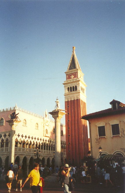Disney's attention to detail and their replicating skill is beautifully shown at Epcot's Italy pavilion. Inspired by Venice, this pavilion is centred around wondrous replicas of the Doge's Palace and the campanile (a solitary bell tower) of St. Mark's square. It even has gondolas tied to barber-striped moorings at the edge of World Showcase Lagoon! The interesting shops at this pavilion make up for the lack of a main attraction. They include Delizie Italiane, Il Bel Cristallo, and La Bottega Italiana. They sell fine Italian glassware, jewelry, and tempting Italian treats. The only restaurant in the Italy pavilion is L'Originale Alfredo di Roma Ristorante, which serves all the usual Italian dishes, plus some that will be new to most non-Italians.