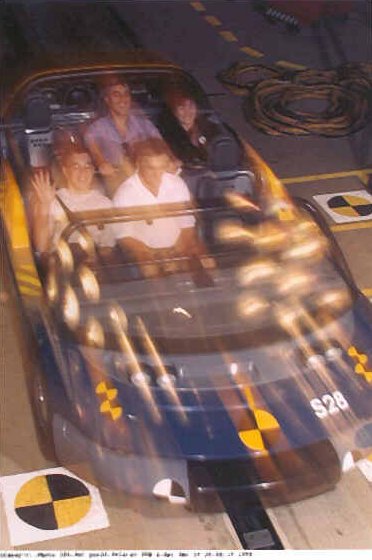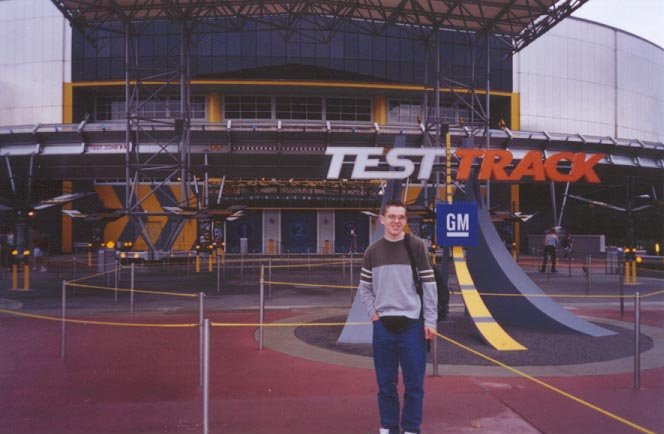 great that ride is. Too bad they had to close it. We then went to Wonder's of Life. My mom and I rode Body Wars, while my dad (he gets very sick on simulators) played in the Fitness Fairgrounds. We saw two shows of the Anacomical Players, which were great. We ate lunch at Pure & Simple, which has some really tasty, and healthy, meals; and then saw Cranium Command. Next, we did one side of Innoventions, and then checked out Ice Station Cool. It was really neat having real snow in the entryway, although it was more like slush. This place was great, and I couldn't believe the unlimited free samples. This is a great place to come when your thirsty. I decided to try the Beverly soft drink despite hearing everyone's complaints, and I soon regretted it. Boy, was it bitter! Next, we did the other side of Innoventions and when we came out a bit before 4:00, there was already a line forming for Test Track. With only about 20 people in line, I decided to join it.