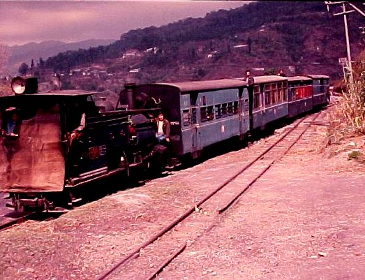 The GMS train siding - 1979. The famous Darjeeling "toy train" winding it's way towards Kurseong. After a brief stop the train will then continue on it's descent down to Siliguri. The hamlet of 'Sepoy Dhura' can be seen on the far side of the hill. Photo courtesy of Malcolm Lewis.