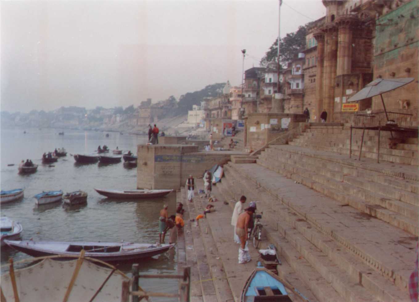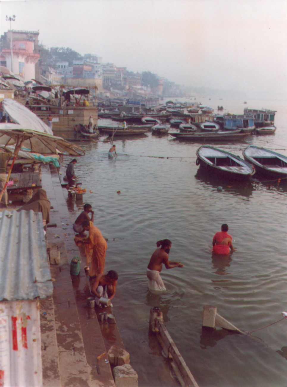 "Into the Ganga they plunge on arrival, ill or well, robust or sickly; and ladle the holy liquid up with small, dark, trembling hands, repeating the scared names, and softly mentioning the the sins they would expiate and the beloved souls they would plead for."