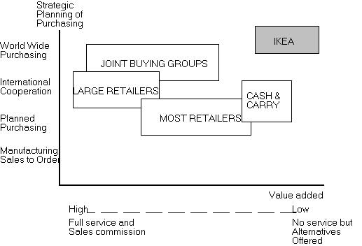 In order to furnish the customer with good quality products at a low cost, the firm must be able to find suppliers that can deliver high quality items at low cost per unit. The headquarters provides carefully selected suppliers with technical assistance, leased equipment and the necessary skills needed to produce high quality items. This long-term supplier relationship does not only produce superior products, but also add internal value to the suppliers (Normann et al, 1993: 72). In addition, this value-chain modification differentiates Ikea from its competition.
