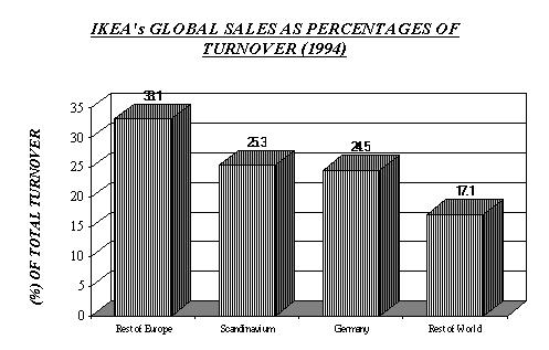 Ikea Svenska AB, founded in 1943 is the world's largest furniture retailer which specializes in stylish but inexpensive Scandinavian designed furniture. It has 128 fully-owned stores in 26 countries, visited by over 108 million people yearly, and worldwide sales of about $5.4 billion in 1994 (IKEA 1994). Ikea's success in the retail industry can be attributed to its vast experience in the retail market, product differentiation, and cost leadership. The company is, perhaps, one of the World's most successful multinational retailing firms operating as a global organization based on its unique concept that the furniture is sold in kits that are assembled by the customer at home. Refer appendix 1B for corporate performance.