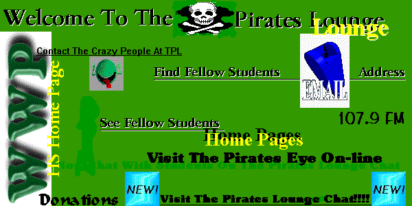 Welcome to the wwphs pirate lounge. Here you will find people that have an e-mail address.(If you would like your name here please send me it.) You will also find cool links to the web and cool stuff going on at school. Enjoy,