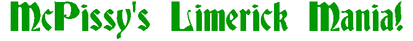 He's rumored to have also blinded hundreds of pirates & beloved cartoon character Popeye. As you can see, his methods have grown more elaborate throughout the years. He's shown up a number of times at the doorstep of P.I. Headquarters, and so far, we've been able to keep our eyesight intact, thanks to titanium steel doors, and our thick coke-bottle glasses. Now, we here at P.I. are proud to announce that we have struck a deal with the hateful lil' bastid! In exchange for this page (and a case of Guiness to sweeten the deal), he's agreed to limit his attacks on us to only 5 per year, and to call us on his cel phone just before he strikes again, so that we may listen in & laugh our asses off at the anguished screams of the next poor slob that falls victim to his wrath. So without further ado, behold the eye popping mirth that could only be... Ye Limericks O' McPissy!