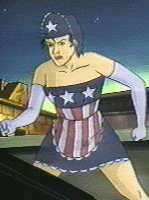 American Maid is the most patriotic cleaning lady The City has to offer. BUT DON'T BE FOOLED! She kicks a lot of ass. Her favorite attack seems to be her spike heeled shoes. Ouch.
