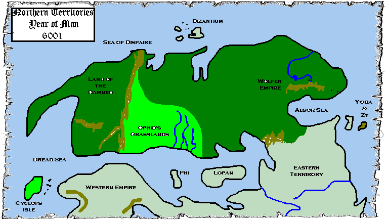 Small frontier port city with a 3200 hundred population. Joint colony between the Wolfen Empire and Bizantium. Trades only with Bizantium and Wolfen ships, though others may drop off passengers. Port laws enforced by a 4th level Water Warlock. Kobold quality weapons and armor available, as well as a small Magic Guild and Alchemist (poor stock cept for scrolls and potions )