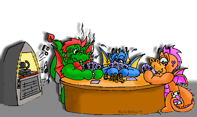 I asked kevin to create an image of dragons having fun, you know, like playing poker or something |