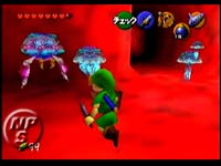 We are back in the red cave with Young Link and it looks as if we are meeting up with a jellyfish of sorts. There are 4 of them in the screen. |