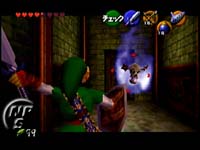 | The jellyfish is now level with Link again. Here he is attacking it with his sword. | ![]() |