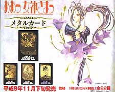 These have been out since November of 1997, and there are total of 22 cards. Each one costs 680 yen, roughly $5.28 as of January 22 of 1998. Although the images on cards are rather old, it is just that it is etched on hard metal. Oh, boy, it's gonna take a while for me to collect them all... -_-;