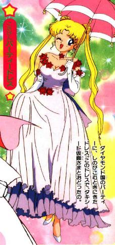First, let's have a look at the evening gowns and some other formal dresses for special occasions, with the help of Sailor Moon and her friends.
