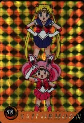 Why do I call them "Poster-Prism" stickercards? Because the pictures on these stickercards are often found in poster-form as well as pencil-boards. *Note: These are the only Sailor Moon stickercards I collect, so please don't email me to ask if I collect other stickercards. I also collect Fushigi Yuugi stickercards. Please email me if you're interested in trading/buying/selling.