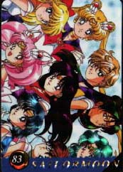 Why do I call them "Poster-Prism" stickercards? Because the pictures on these stickercards are often found in poster-form as well as pencil-boards. *Note: These are the only Sailor Moon stickercards I collect, so please don't email me to ask if I collect other stickercards. I also collect Fushigi Yuugi stickercards. Please email me if you're interested in trading/buying/selling.