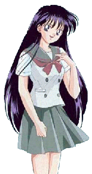 I'm quite tempted to answer the question above by simply saying, "She kicks butt." But then, this would be a waste of webspace, so I'll get into depth. Brace yourselves... Alright, there's plenty of reasons, but one stands out. One week in the summer of '98, my cousin and I were watching the very end of 'Beautiful Dreamer', on the Sci-fi Channel's 'Anime Week', hosted by Apollo Smile. <cheers madly> I said something about loving it, and wanting to see more. Dora (my kickass Cous. Pardon the French.), said something about how I would probably *love* SailorMoon, a show she was once hooked on. Needless to say, that night I connected to the internet, only to find thousands, maybe millions of sites on Sailormoon. I quickly tried learning all of the SailorScouts' names, wanting to find the one who I was most like, or who I looked like the most. It was a close tie between SailorMars, and SailorStarhealer. Need I say who won? Rei's personality is close to mine in many ways. We both love singing, shopping, and fire. <G> I'm not a pyromaniac, I swear it. <tosses the matches to Clint> Also, we are terrifyingly close in appearence. I've got long dark brown hair, that's a bit past my butt, and I'm working on getting pale purple highlights. Well... I want pale purple highlights, but we all know how *that'll* happen in my life. |