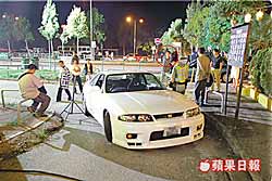 Many spotslight were set up outside the tea house which was facing a road. A white Nissan Skyline sportcar swirled suddenly on the road & hit one of the lights, which was thus broken.
