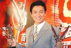 2 nights ago Andy attended the first Annual Music Awards ceremony in Shenzhen. Andy is v popular in the Mianland, he was a big winner that night. He was crowned the Most Popular Male Singer in HK & TW, alongside Faye Wong who was the Most Popular Female Singer. Andy's album Man Cry Is No Crime also won an award.