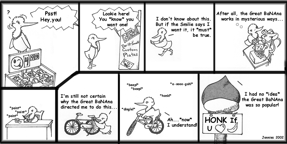Custom Tags Beak receives a message from the Great BaNAna in a Mal-Wart, but isn't sure why.