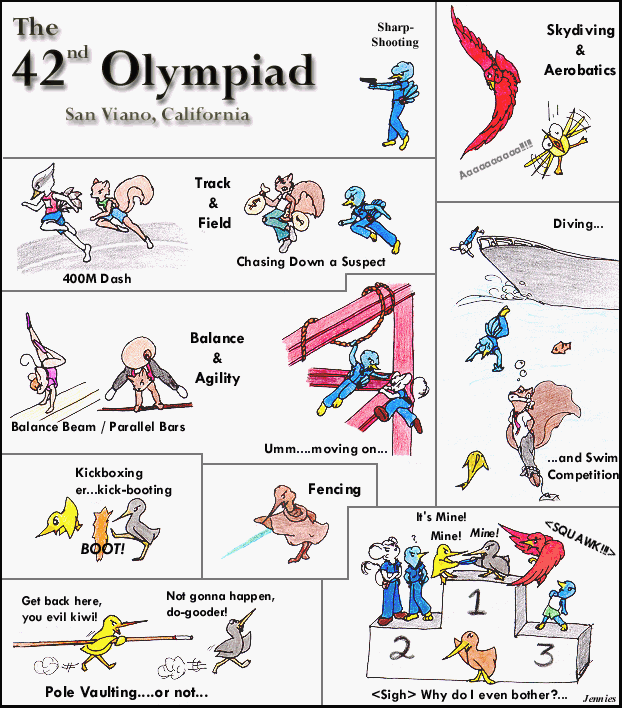 The 42nd Olympiad Quick comic comparison between the daily lives of everyone's favorite detectives and Olympic sports. The result of 12 hours of continuous Cell Biology cramming. (I will NEVER do that again...)