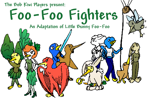 Little Bunny Foo-Foo (the Bob Kiwi version)Evidently Bobetta has a lot of influence on the Bob Kiwi & Company's actitities. She mentioned a while ago that she wanted to do some theater, and here we go! Theater! (Well...kiwi style, anyway...) An incredibly short (for me) and funny rendition of Little Bunny Foo-Foo, performed by Bob & friends.