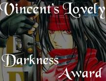 This spiffy-doo award came from Thentavius, the wonderous dark elf himself. Isn't it gorgeous? Vincent makes me go giggle giggle; he's just so yummy. Speaking of yummy, go to Thentavius's Underground right now and worship his coolness! You can come back here later!