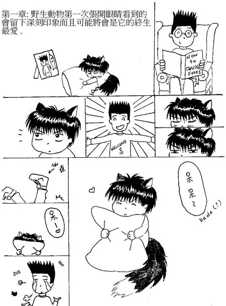 這小小漫畫的靈感來自於[心的距離],一本漫畫的篇外篇 (對不起,不記得作 者). 續集(狐狸還會長大呀)等七月啦!本來想要六月全畫完,可是畫太慢而且 在考試^^;;