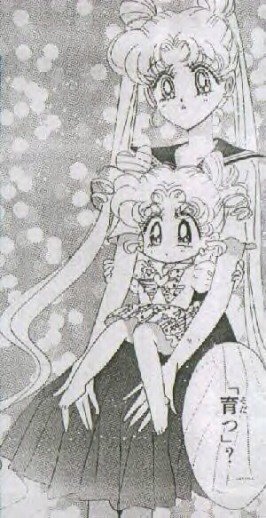 Manga Usagi with Chibi-Chibi on her lap.