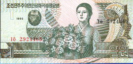 A 100 won North Korean bill. If you fold the bill along the picture of the Great leader Kim Il Sung, supposedly the money is no longer of any worth.