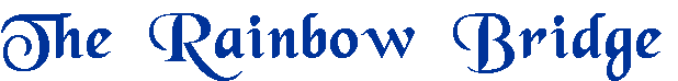 ![]() Dedicated to my Bridge Babies ![]() ![]() Rainbow Bridge Just this side of Heaven is a place called Rainbow Bridge. When an animal dies that has been especially close to someone here, that pet goes to Rainbow Bridge. There are meadows and hills for all of our special friends so they can run and play together. There is plenty of food, water and sunshine and our friends are warm and comfortable. All the animals who had been ill and old are restored to health and vigor; those who were hurt or maimed are made whole and strong again, just as we remember them in our dreams of days and times gone by. The animals are happy and content, except for one small thing: they each miss someone very special, someone who was left behind. They all run and play together, but the day comes when one suddenly stops and looks into the distance. His bright eyes are intent; his eager body begins to quiver. Suddenly, he breaks from the group, flying over the green grass, faster and faster. You have been spotted, and when you and your special friend finally meet, you cling together in joyous reunion, never to be parted again. The happy kisses rain upon your face; your hands again caress the beloved head, and you look once more into those trusting eyes, so long gone from your life, but never absent from your heart. ![]() Home Cheetoo Kirby Diesel Muffins Story Rainbow Bridge Memory Tasha Fishie Muffins Bridge Awards Links