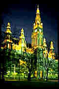 The Votiv Church was built by Maximilian, brother of Franz Josef and Emperor of Mexico, in memory of an assassination against Franz Josef in this park area. He was attacked with a knife against the throat. But the uniform had such stiff collar, that the knife didn't get through....