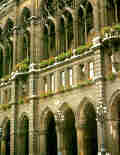 Emperor Franz Joseph ordered the demolition of the city walls 130 years ago. When most of the old city walls had to be removed in the middle of the nineteenth century, a majestic tree-lined boulevard circling the old part of the city was erected in their place. Since then, "the Ring" has become a prime showcase for most of Vienna's architectural attractions: the two imposing museums (Fine Arts and Natural History) are gazed upon by a stature of Empress Maria Theresa; Parliament with a marble statue of Pallas Athena; the most important German-language theater, the National Theatre (Burgtheater); Vienna's renowned University; and two marvelous examples of neo-Gothic architecture: City Hall (Rathaus) with its splendid park and the Votive Church (Votivkirche) with its double spires that seem to be made of fine lace; several imposing ministry buildings; and finally, the resplendent State Opera House, which reopened completely renovated in 1955 after it had been almost  totally destroyed during the last war.