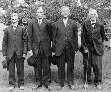 Photo at right which hangs in the Epsom Public Library. Memorial Day, 1911, Civil War Veterans, from left to right, Henry C. Lovejoy, Calvin J. Brown (John Calvin Brown), James W. Marden and Benjamin Bickford.
