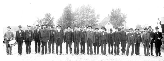 Reunion of Civil War Veterans circa 1890. GAR Hall is tallest building in background.