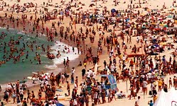 第一個是世界有名的BONDI BEACH,每到澳洲的夏季,這個海灘總是擠滿衝浪,做日光浴的人潮,世界聞名的帆船賽也是在這裡舉行。三月是夏天的尾聲,海灘上還是可以看到身材曼妙的女郎,依依不捨地享受即將結束的夏日風情。