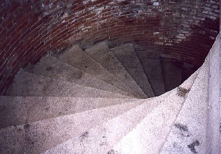 Steps like these can have a somewhat menacing quality to them. There are actually 3 spiral stairwells in the fort, but only two reach the top level. The third is capped off by the old lighthouse. |