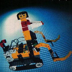 When the first of my three sons was born, my father wistfully suggested that he had seen some nice-lookmg steam engines in a toyshop. I was taken back 40 years to a living room where he was building a Meccano fairground carousel powered by steam.Stephen Biddulph, in his SNAG manual, Manhood, correctly observes that our neglected children no longer learn from observing us at work in the fields. What Biddulph may have overlooked is we now teach them by employing the proliferating world of toys. A good toy is not for the children; it's for me to play with and for the children to sit at my lotus feet. Mothers do not always understand this and often feel that time should be spent doing something "useful" like transporting clothes from the bedroom floor to the laundry. My children and I are undaunted by the information age. The only people who can't program a VCR are unimaginative comedians. I have completed The Logical Journey of the Zoombinis and Treasure Math Storm despite the distraction of my children whining over my shoulder that it's their turn. I believe their self-esteem has grown from observing my mastery of first grade arithmetic. This is education by stealth. Give them something to play with that forces their attention in a useful direction - sport for the mind. My only reservation is that I am preparing them for some Orwellian work-cubicle of the next century where they are denied even the physicality of the odd paper clip and elastic band fight. Lego Mindstorms offers an escape. It's the first toy of the computer age that actually does something in the real, material world other than mispronounce the last letter of the alphabet. It's a programmable robotics kit. Lego Mindstorms is a brain, two muscles, rwo pressure nerves, an eye, a voice and a whole bunch of connectable ligaments, and can be expanded to a temperature sensor and a rotation counter. These capacities are minimal. The "eye" is a single-celled light sensor and the muscles are electric motors but anyone who has written assembly language, dissected a frog or understands Turing machines will recognise that complex mechanisms are created by compounding simple ones. The really cute part is the programming language. You join jigsaw pieces of code, "On For...", "Wait", "Reverse Direction" and True/False sensor branches, put them inside iterative loops, and via an infra-red device hanging off a computer communications port chat up the RCX mobile brain and download a sequence of instructions. Students of Theory of Computation (Melb.) in the '60s had to submit punched cards in the late afternoon, to be processed overrnight, to find that they were wrong the next day. I know. I was one and my overnight attention span did not stretch to mainframe operating systems such as Fortran. With Lego Mindstorms you can prove that you are a crap programmer instantly, and then fix it. Quickly. Meanwhile, the children look askance and the wife querulously enquires how long you will be "playing". She may not realise that one could use the light sensor to seek and identify a black sock, use the temperature sensor to assess the degree of composting that had already occurred, and if a condition existed whereby the sock, like an over-ripe haystack, was about to self-combust, then the RCX could opt to pick up the sock and take it to the bathroom. Having a white-carpeted house with a black-tiled bathroom and no heating might be a necessary precondition for optimum operation but I believe that this is a reasonable cost/benefit. It's through play like this that the vacuum cleaner, the refrigerator and the Leyland P76 were born. Ultimately, rather than having an argument about whether the eight-year-old and I were "playing" or "doing somethmg useful" we elected to rise at 5am so we could go about our men's business undisturbed before matron awoke. With two or three of these units we could probably knock together a fairly serviceable woman.