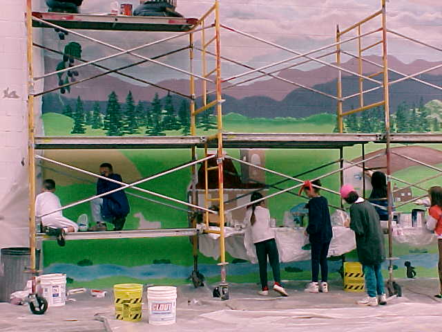 Thanks also to Shannon Ray, mural designer; Marge Pettit, project supervisor and the Dundee Firefighters for their help. UPDATE: The mural had to be painted over in early 2004 to preserve the fire station walls. We enjoyed it while we had it!