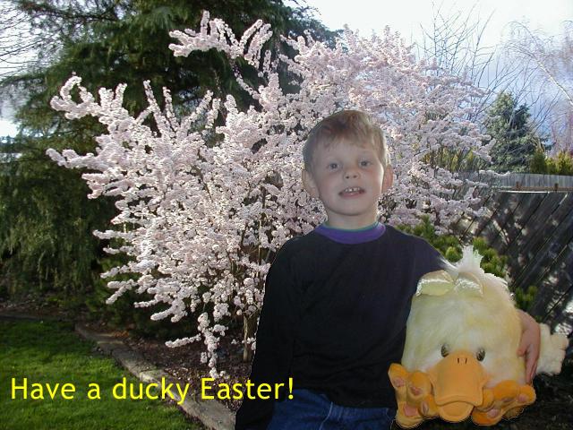 Mike diddled around and superimposed B.J.'s picture over a picture of our plum tree in the back yard. Not a bad job!