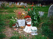 7 and 8. The grave of Mary Jane Kelly (aka Marie Jeanette Kelly), the last victim of Jack the Ripper (11/9/1888); St. Patrick Roman Catholic Cemetary, Leytonstone, London. The inscription reads "Marie Jeanette Kelly, Age 25, murdered Fri. Nov. 9th, 1888".