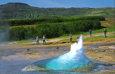 Some of the waterspouts in Iceland erupt as high as 100 feet every five minutes.