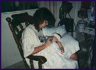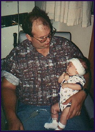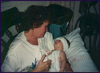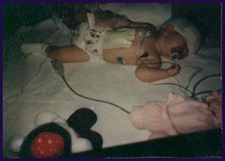 In the picture of my mom and Arielle, you can see the cord that was used for the transfusion much easier. You can also see in these pictures how worried we were. At this point I didn't know much about Hydrocephalus, so I did not know if my daughter would be doing all those normal childhood things like crawling, walking, etc...I just had no idea what she would or could be able to do. No one knew for sure how she would pull through either. Each case is very different and specific to the indiviual