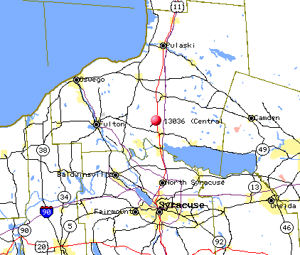 This is a map that shows the general vicinity of central New York. My home is located in the area of the red dot. Lake Ontario is located to the Northwest and provides significant snow and ample fishing. The Salmon River is located about 15 miles from my home in Pulaski. This is the home of the Salmon run in the Northeast. To the southeast is Oneida Lake, a great perch and walleye spot!