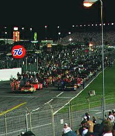 see as a large line of fire trucks circled the track at dusk. I personally salute these brave men for their