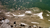 Experience a virtual Mt. Jefferson climb by navigating the south side route from the lowest point to near the summit pinnacle. Conditions shown are typical of late summer or early autumn. During this climb the winds at higher elevations blew steadily at 40 to 50 miles per hour. The distance covered on this route is about seven miles from base camp near Shale Lake with an elevation gain of 4000 feet. This climb depicts the traditional south side route up to Red Saddle. Navigate either by clicking on the thumbnail images at left, or by following the numbers on the image map above. You can browse the climb from the mid-size images at right, or if you select the Expanded View selection you will have the choice of moving through the full size images directly by choosing the Climb On icon. For